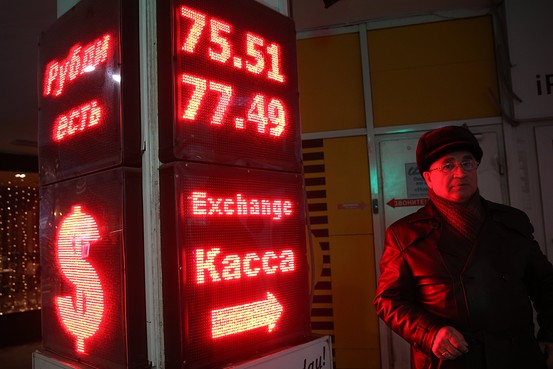 俄羅斯總統普亭(Vladimir Putin)批評央行沒有及時採取行動支持盧布,因油價跌至五年低點,俄羅斯經濟遭受制裁,盧布自6月以來大幅下跌,美元兌盧布由33.97大幅飆升,最高觸及73.26,盧布貶值幅度過半。