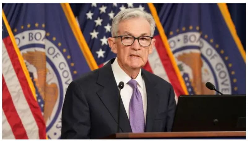 聯準會主席鮑威爾於2023年12月13日在美國華盛頓舉行的聯邦公開市場委員會利率政策閉門會議後舉行的新聞發布會上發表講話。