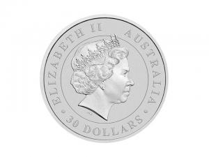 正面:英國女王伊莉莎白二世(ELIZABETH II)的肖像,配戴著她的皇冠,環狀字樣則標示著產地(AUSTRALIA)、及面額(30 DOLLARS),圖案為設計師Ian Rank-Broadley所設計,女王頭像下方為設計師名縮寫。