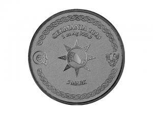 硬幣正面描繪了海姆達爾站在岸邊,警戒地等待著他的敵人洛基。最終決戰即將展開。背面圖案為海姆達爾的象徵性號角,以及雙頭鷹-日耳曼尼亞造幣廠的標誌。