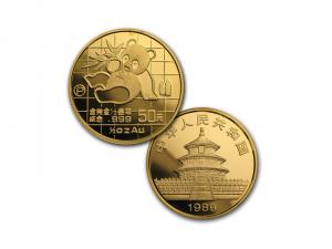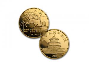 中國熊貓金幣因其每年更換的設計而備受珍視,圖案始終是可愛的熊貓。 1989 年版的熊貓金幣圖案為一隻坐著啃竹子的熊貓。所有金幣均裝在原廠塑膠袋中。