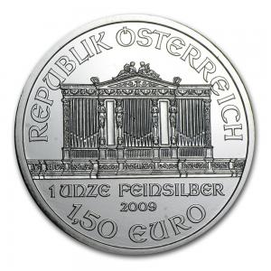 「維也納愛樂銀幣」是由奧地利鑄幣廠鑄造;2008年2月首次發行,它是在歐洲具知名度的銀幣之一。這款銀幣被大量生產作為投資和收藏用途,根據奧地利鑄幣廠所公布之發行數字,至2014年止,總銷量將近7400萬枚。 它具有奧地利,甚至歐洲的法定貨幣地位,面值1.5歐元,重1金衡盎司,純度99.9%。「維也納愛樂銀幣」僅發行1盎司重量版本,且目前尚無證書精裝版本發行。